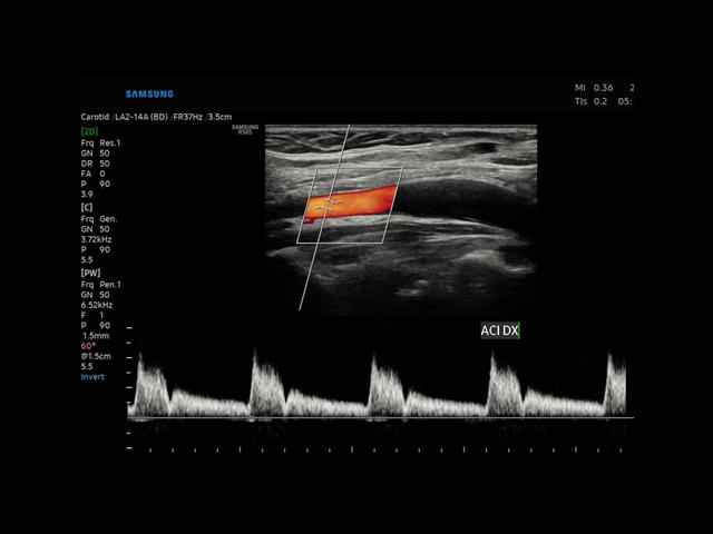 • Сонные артерии: автоматическая, полуавтоматическая, ручная трассировка доплеровского спектра; ПСС, КДС, %СтПлощ, %Ст Диам, площадь сосуда, диаметр сосуда, средняя толщина интимы, объемный кровоток.