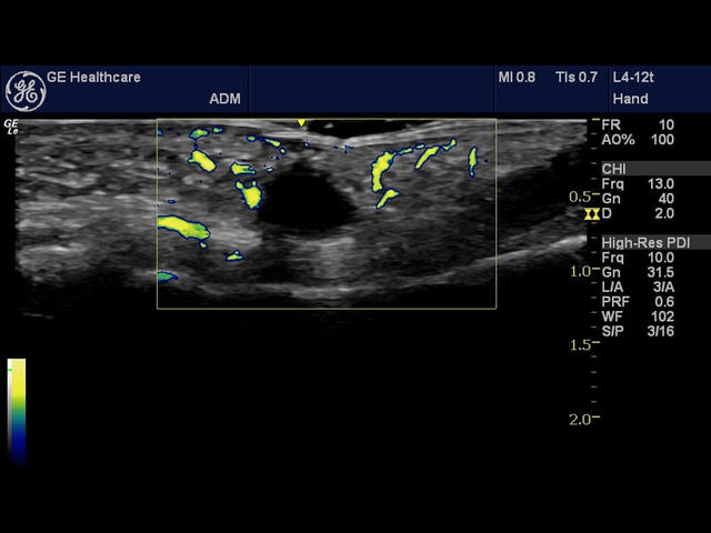 Ультразвуковой аппарат LOGIQ E обеспечивает высококачественную визуализацию, а 15-дюймовый монитор с разрешением Full HD выводит четкое изображение с минимальным уровнем шумов. Аппарат работает с датчиками, которые обладают высокой чувствительностью и сканирующей частотой 22 МГц. Это позволяет получать на экране аппарата высококачественные изображения как поверхностных тканей, так и неглубоких сосудов.